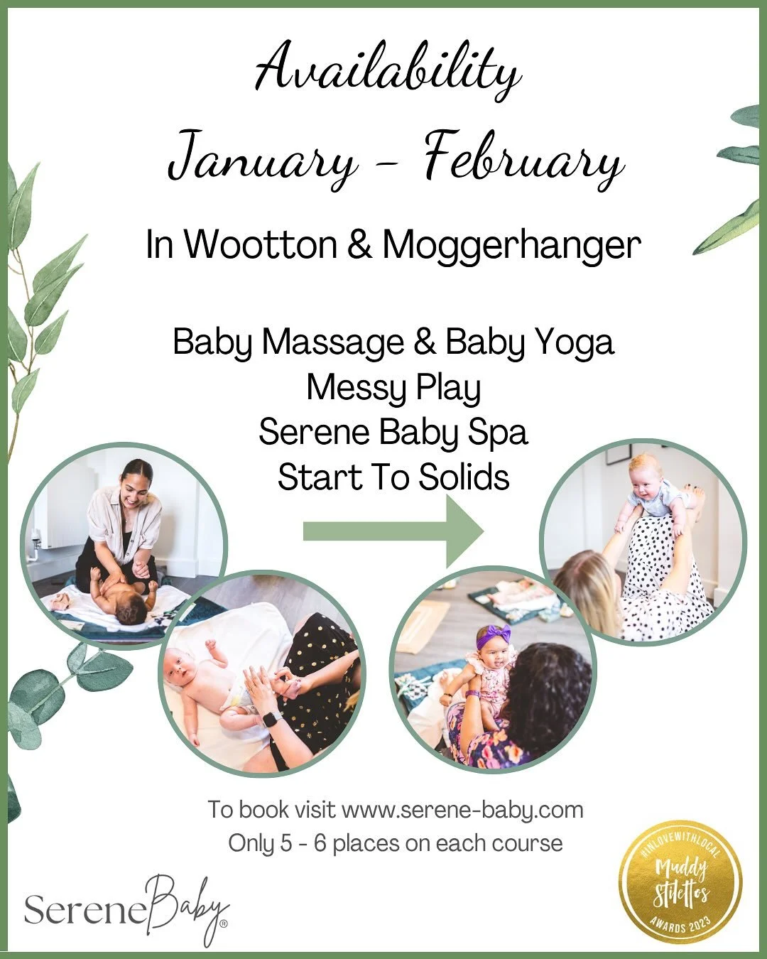 After spending 8-years as a massage therapist and over 9-years working with children in schools and nurseries, Sareena combined her two passions. She trained to become a Baby Massage and Baby Yoga teacher and Serene Baby was born in 2018, with Sareena teaching classes from her living room.